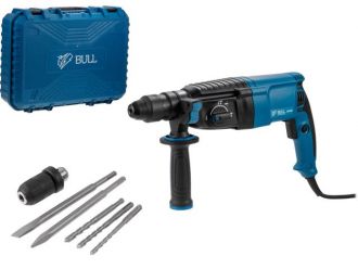 Перфоратор BULL BH 2602 в чем. 800 Вт, 3.0 Дж, 4 реж. + 2 зубила, 3 сверла, БЗП в комплекте(800 Вт, 3.0 Дж, 4 реж., патрон SDS-plus, БЗП в комплекте, вес 3.4 кг)