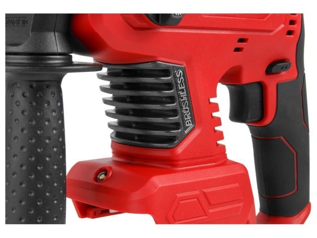 Модель имеет бесщеточный двигатель, что продлевает срок службы инструмента в 2 раза, делает его на 30% мощнее при меньших размерах и весе, позволяет работать до 50% дольше на одном заряде аккумулятора. Перфоратор имеет металлическую накладку возле платы управления, для более эффективного охлаждения, что значительно увеличит срок его службы. Повышенная прочность ударного механизма обеспечит высокую производительность и повысит комфорт использования. Малый вес и компактные размеры делают данный перфоратор незаменимым при работе в труднодоступных местах без внешнего источника питания. Имеет три режима работы: сверление, сверление с ударом, долбление, а также функцию регулировки угла оснастки (механическое управление). Оснащен подсветкой, реверсом, эргономичной прорезиненной рукояткой. Инструмент входит в линейку WORTEX ALL1 на одном аккумуляторе, которая представлена более чем 50 моделями. Напряжение аккумулятора: 18 В; Тип аккумулятора: Li-ion; Номинальное число оборотов: 0-1550 обмин; Номинальное число ударов: 0-4950 удмин; Сила удара: 2,2 Дж; Макс. диаметр сверла при сверлении бетона: 20 мм; Макс. диаметр сверла при сверлении дерева: 26 мм; Макс. диаметр сверла при сверлении стали: 13 мм; Масса (без принадлежностей): 1,7 кг; Гарантийный срок - 2 года.