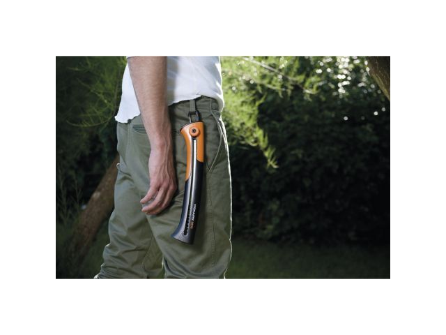 Выдвижная пила Fiskars Xtract является замечательным дополнением для топоров серии Fiskars Xseries. Полностью выдвижная, а также укомплектованная карабином для крепления на ремень, пила безопасна и удобно лежит в руке. Умно спроектированное лезвие с двойными зубьями обеспечивает быстрое и эффективное пиление любой древесины во время обратного (тянущего) движения. Эргономичный дизайн, защита для пальцев, и комфортабельная ручка SoftGrip обеспечивают уверенный хват. Пилы Fiskars Xtract предлагают отличное качество пиления в изящном инструменте. Fiskars Xtract доступны в трех размерах: большая, малая и строительная пила с модифицированным лезвием. Признаки Эффективна для распиливания свежей древесины Новая конструкция с клипсой на ремень, которая убирается во время работы Ручка из SoftGripTM обеспечивает надёжный захват Пальцы защищены от соскальзывания на лезвие Длина лезвия 255 мм TPI (кол-во зубьев на дюйм): 4 Большая режущая способностьдо 220 мм Пилит при обратном движении Вес - 230 гр. Длина - общая 330 мм, лезвие 255 мм. Упаковка 4 шт Гарантия: 2 года
