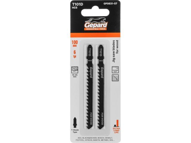 Пилка лобз. по дереву T101D (2 шт.) GEPARD(пропил прямой, тонкий, аккуратный и чистый рез)