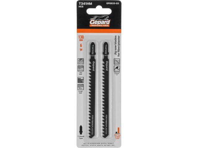 Пилка лобз. по стеклопластику/гипсокартону T341HM (2 шт.) GEPARD(пропил прямой, грубый рез)