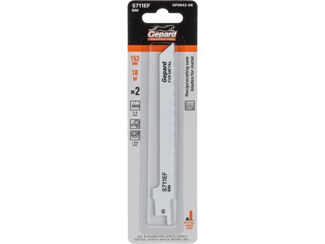 Пилка сабельная по металлу S711EF (2 шт.) GEPARD(152мм, полотно для сабельной пилы, пропил криволинейный)