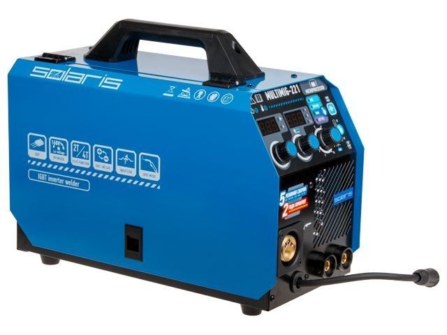 Полуавтомат сварочный Solaris MULTIMIG-221(230В; MIG/SPOT/FLUX/MMA/TIG; евроразъем; горелка 3 м; смена полярности; 2T/4T, рег.индуктивн.)