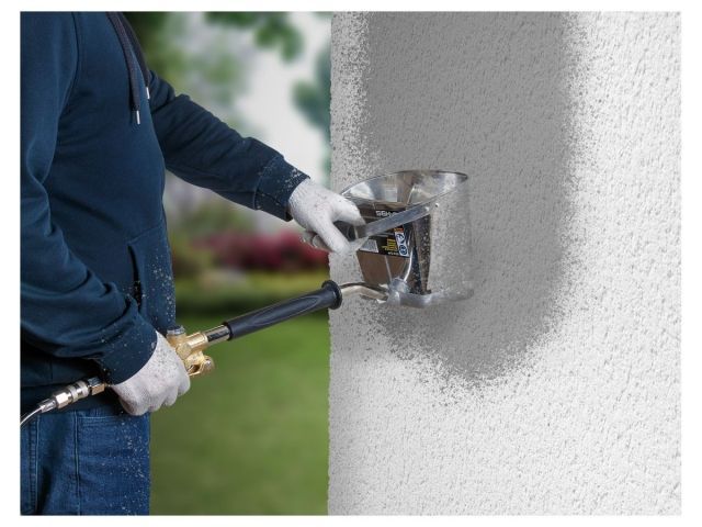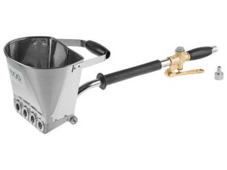 Хоппер-ковш предназначен для нанесения строительных смесей (штукатурки, бетона, глины) на поверхность бетонных или железобетонных конструкций под давлением сжатого воздуха, что дает плотное взаимодействие наносимого состава с поверхностью, заполнение трещин, раковин и пор, а также значительно ускоряет нанесение смесей по сравнению с ручным способом. ВНИМАНИЕ! НЕ ИСПОЛЬЗУЙТЕ ПРИСПОСОБЛЕНИЕ С ДАВЛЕНИЕМ ВЫШЕ 6 БАР ВО ИЗБЕЖАНИЕ ТРАВМ! В комплекте имеется быстросъемный штуцер для удобства подключения к стандартным шлангам, но для достижения максимальной производительности рекомендуется использовать соединение елочка и шланг с внутренним сечением 16 мм.