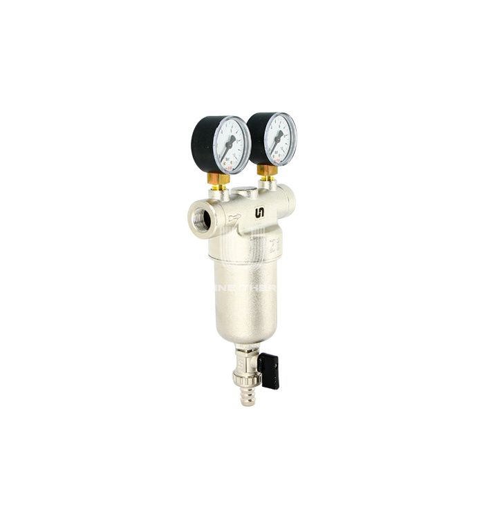 Промывной фильтр Uni-fitt 216N2030, 1/2" ВР-ВР, с 2 манометрами, со сливным шаровым краном