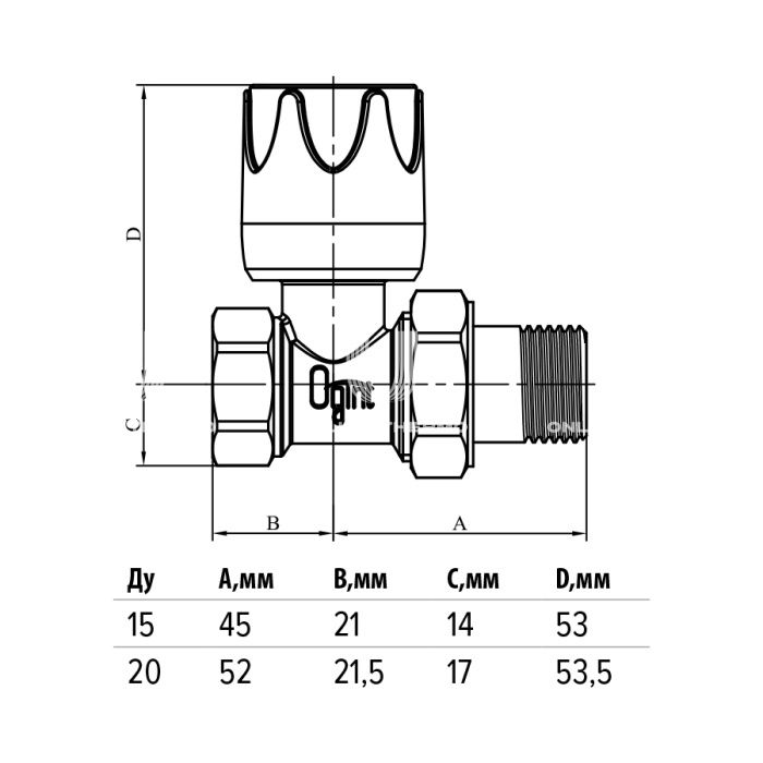 Радиаторный клапан ручной регулировки Ogint 3/4" ВР, прямой