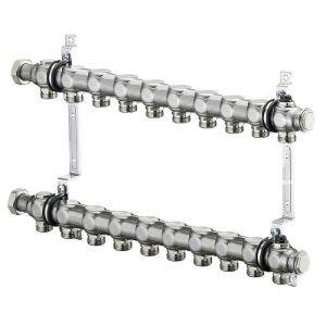 Распределительный коллектор (группа) для отопления Oventrop Multidis SH10 1407160, ВР 1", на 10 контуров, 3/4" ЕК, нержавеющая сталь, нерегулирующий