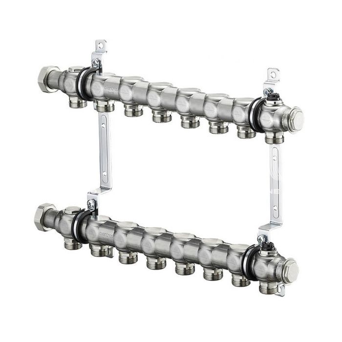 Распределительный коллектор (группа) для отопления Oventrop Multidis SH7 1407157, ВР 1", на 7 контуров, 3/4" ЕК, нержавеющая сталь, нерегулирующий