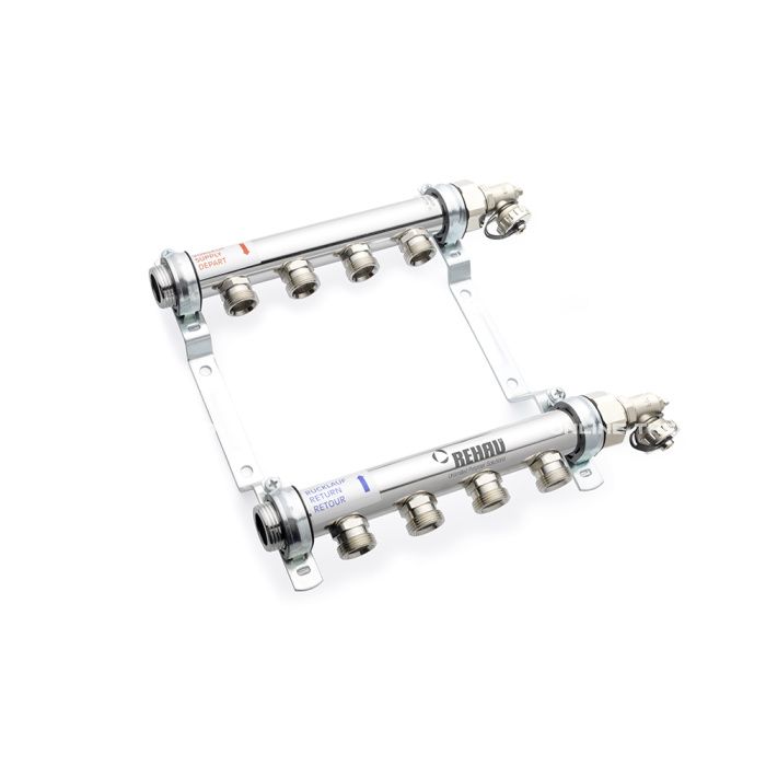 Распределительный коллектор (группа) для отопления Rehau HLV 11102041001 НР 1", на 3 контура 3/4" EK, нержавеющая сталь, с концевыми группами