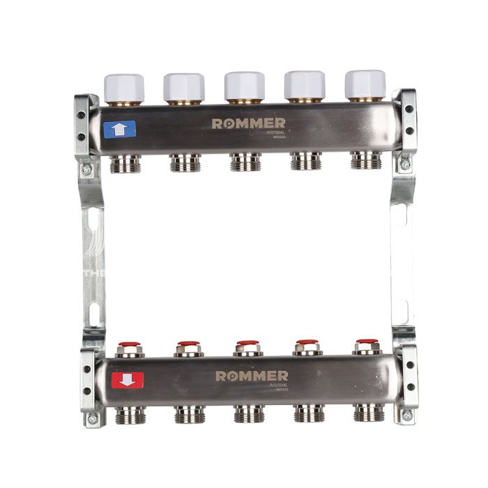 Распределительный коллектор (группа) для отопления Rommer RMS-3200-000005 ВР 1", на 5 контуров 3/4" EK, нержавеющая сталь