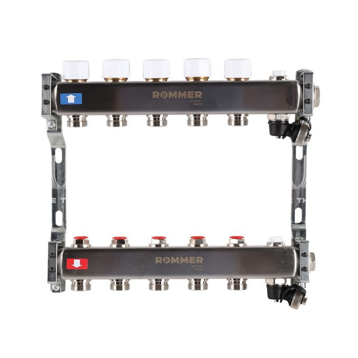Распределительный коллектор (группа) для отопления Rommer RMS-3201-000005 ВР 1", на 5 контуров 3/4" EK, нержавеющая сталь