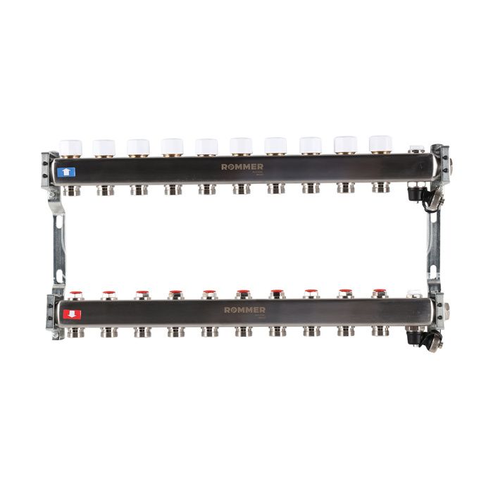 Распределительный коллектор (группа) для отопления Rommer RMS-3201-000010 ВР 1", на 10 контуров 3/4" EK, нержавеющая сталь