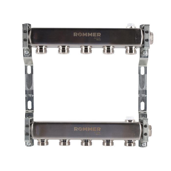 Распределительный коллектор (группа) для отопления Rommer RMS-4401-000005 ВР 1", на 5 контуров 3/4" EK, нержавеющая сталь, нерегулирующий