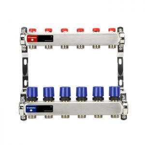 Распределительный коллектор (группа) для отопления Varmega VM15506 ВР 1", на 6 контуров 3/4" EK, нержавеющая сталь