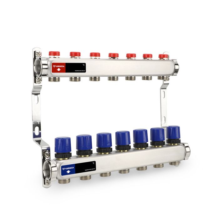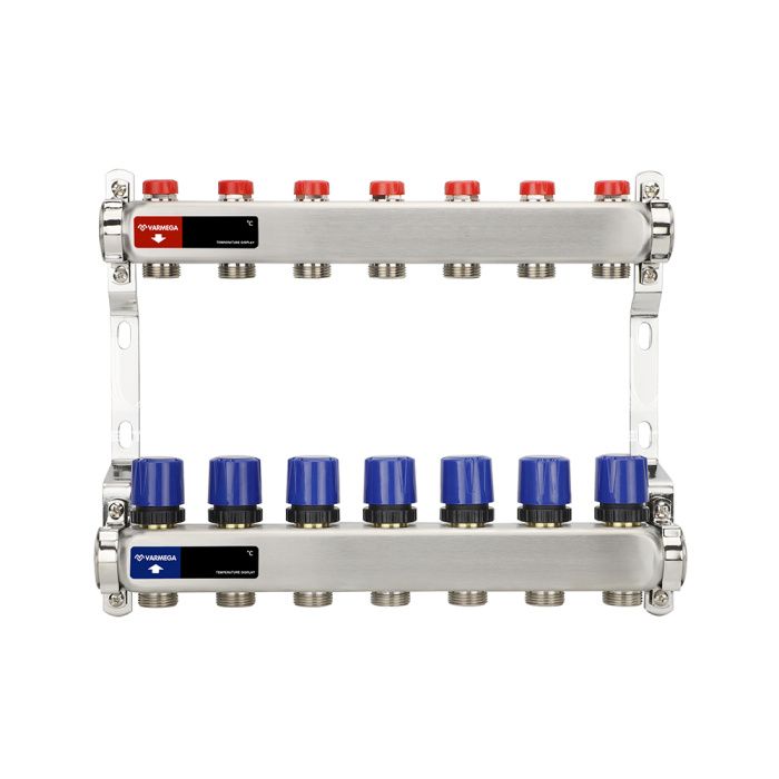 Распределительный коллектор (группа) для отопления Varmega VM15507 ВР 1", на 7 контуров 3/4" EK, нержавеющая сталь
