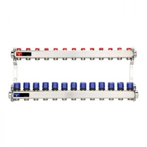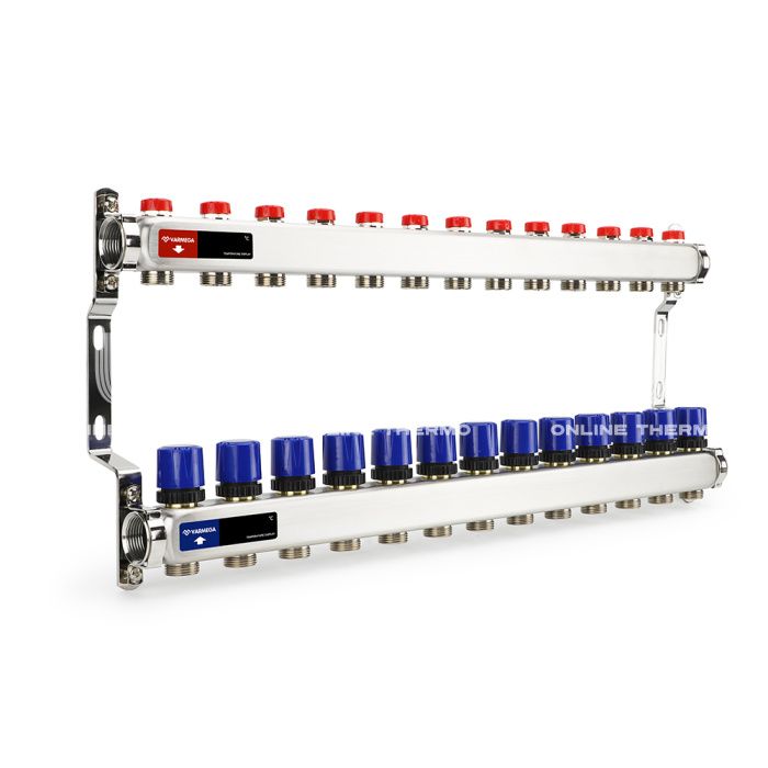 Распределительный коллектор (группа) для отопления Varmega VM15513 ВР 1", на 13 контуров 3/4" EK, нержавеющая сталь