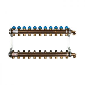 Распределительный коллектор (группа) для отопления Watts HKV-11 10004190 ВР 1", на 11 контуров 3/4" ЕК, латунь, с концевыми группами