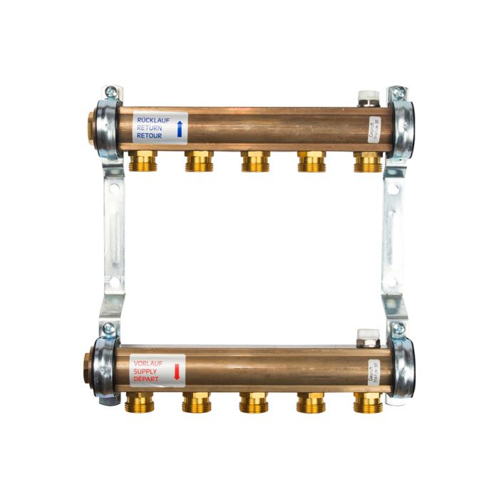 Распределительный коллектор (группа) для отопления Watts HKV/A-5 10004544 ВР 1", на 5 контуров 3/4" ЕК, латунь, нерегулирующий