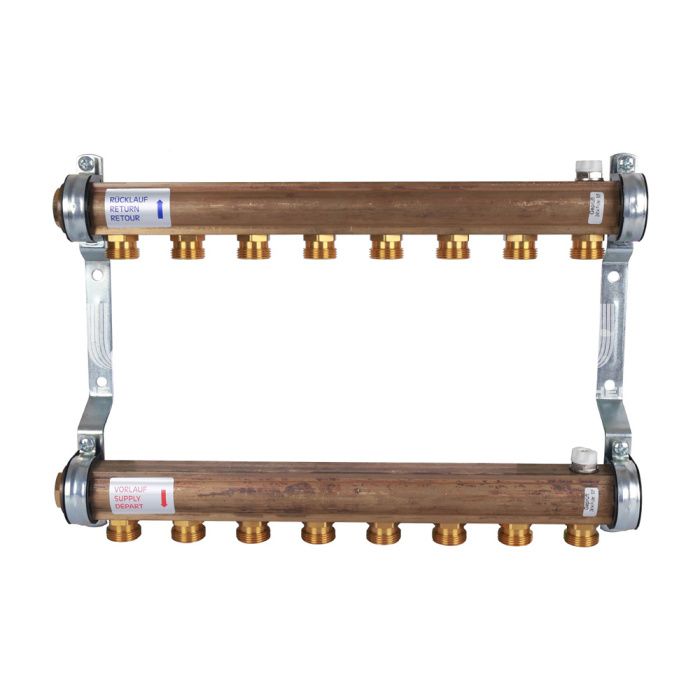 Распределительный коллектор (группа) для отопления Watts HKV/A-8 10004550 ВР 1", на 8 контуров 3/4" ЕК, латунь, нерегулирующий