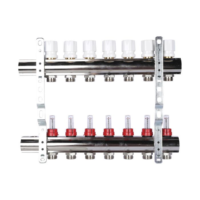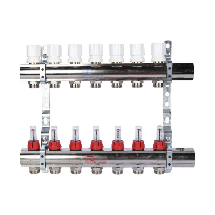 Распределительный коллектор (группа) с расходомерами Luxor 15662707N ВР 1", на 7 контуров 3/4" EK, никелированный