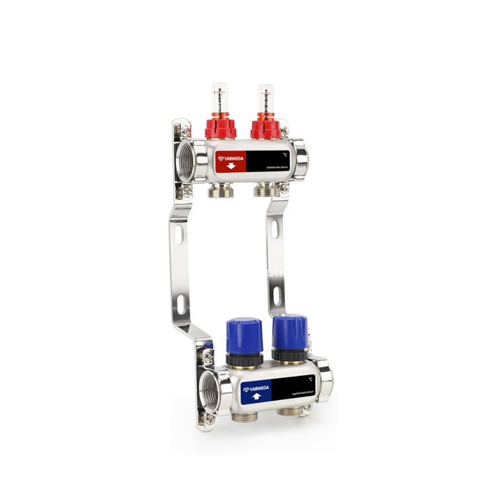 Распределительный коллектор (группа) с расходомерами Varmega VM15102 ВР 1", на 2 контура 3/4" EK, нержавеющая сталь
