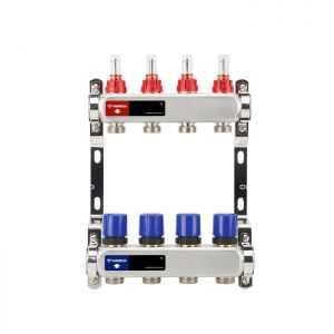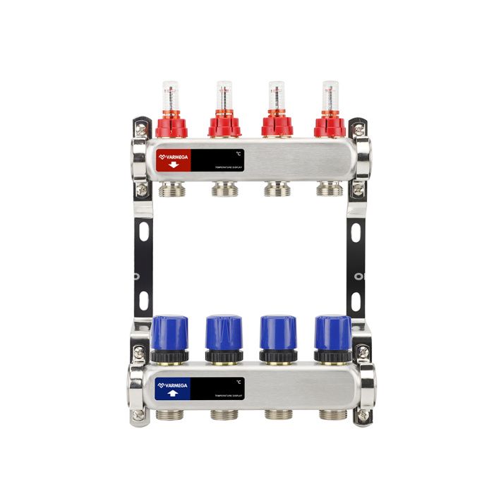 Распределительный коллектор (группа) с расходомерами Varmega VM15104 ВР 1", на 4 контура 3/4" EK, нержавеющая сталь