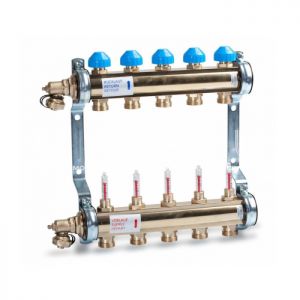 Распределительный коллектор (группа) с расходомерами Watts HKV/T-5 10004199 ВР 1", на 5 контуров 3/4" ЕК, латунь, с концевыми группами