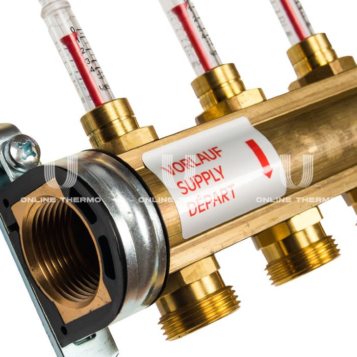 Распределительный коллектор (группа) с расходомерами Watts HKV/T-9 10004203 ВР 1", на 9 контуров 3/4" ЕК, латунь, с концевыми группами