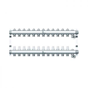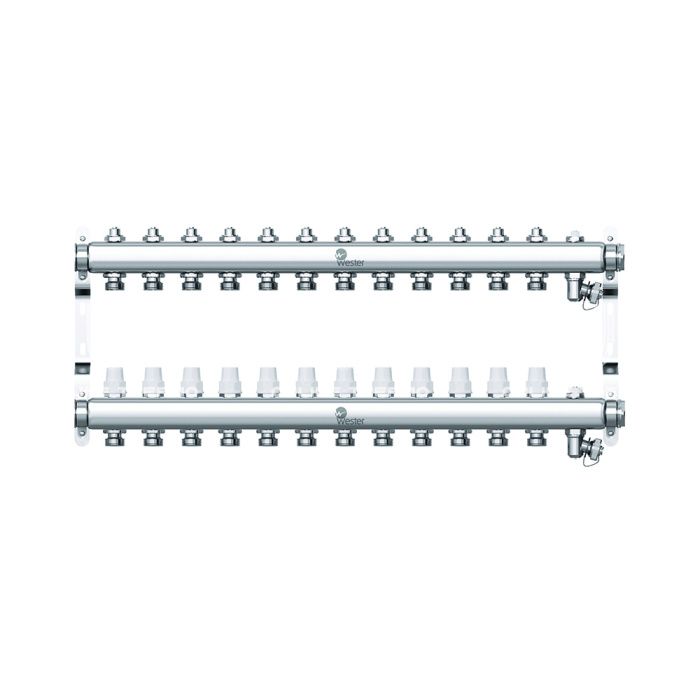 Распределительный коллектор (группа) Wester W903.12, 0-32-1915, 1", на 12 контуров 3/4" EK, нержавеющая сталь, с 2 заглушками