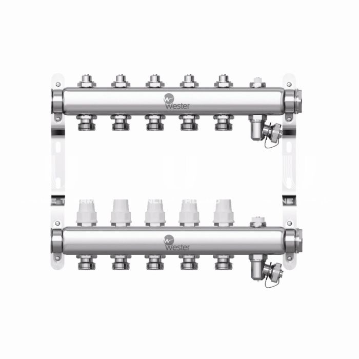 Распределительный коллектор (группа) Wester W903.5, 0-32-1880, 1", на 5 контуров 3/4" EK, нержавеющая сталь, с 2 заглушками