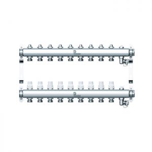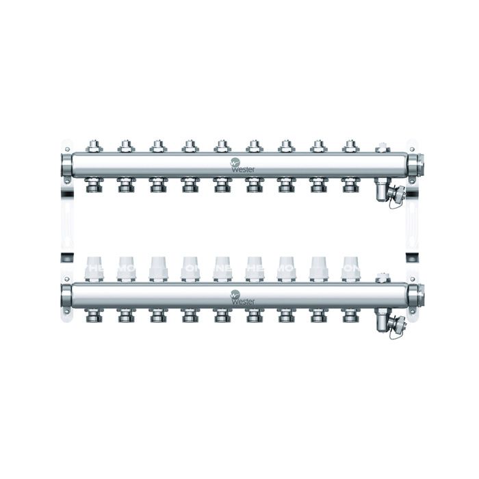 Распределительный коллектор (группа) Wester W903.9, 0-32-1900, 1", на 9 контуров 3/4" EK, нержавеющая сталь, с 2 заглушками