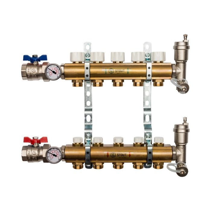 Распределительный коллектор Stout из латуни без расходомеров 5 вых.