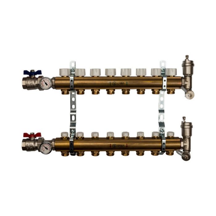 Распределительный коллектор Stout из латуни без расходомеров 8 вых.