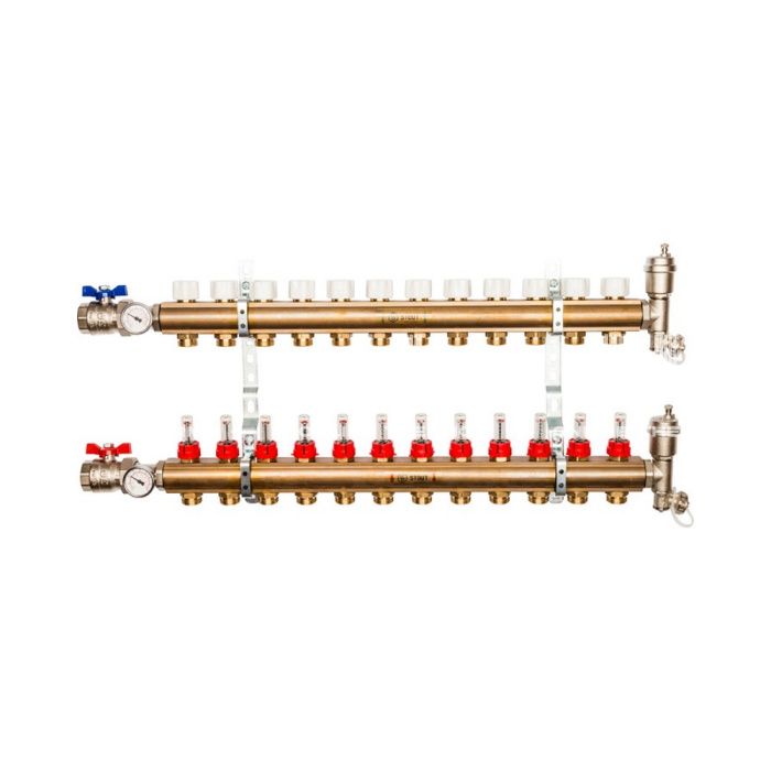 Распределительный коллектор Stout из латуни с расходомерами 12 вых.