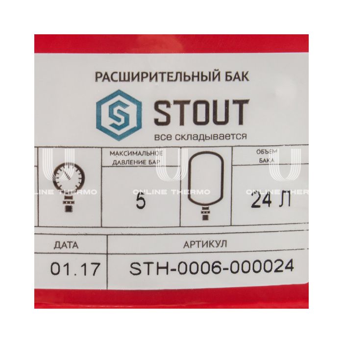 Расширительный бак для отопления Stout STH-0006-000024, 24 л, красный вертикальный, подвесной