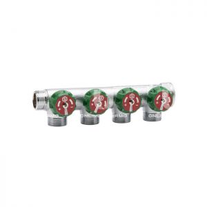 Коллекторы распределительные с запорными клапанами для систем водоснабжения и отопления, тип SMВ 6849 STOUT – предназначены для распределения потока транспортируемой среды по потребителям путем перекрытия клапанов на отводах. Коллекторы могут использоваться на трубопроводах систем холодного и горячего водоснабжения, а также для транспортировки жидкости, не агрессивной к материалам элементов коллекторных систем. Распределительные коллекторы могут иметь два, три или четыре выхода с наружной резьбой 1/2" или 3/4". Распределительные коллекторы с запорными клапанами соединяются по принципу модульности. Основная задача распределительного коллектора для системы водоснабжения это – подведение равномерного водного потока к каждой точке в жилом помещении, исключение перепадов давления и температур при одновременном пользовании несколькими сантехническими приборами. Технические характеристики: Максимальное рабочее давление Рраб, бар: 16. Максимальный перепад давления, бар: 1. Пропускная способность отводов, Kvs, м3/ч: 2,5. Максимальная температура теплоносителя Тмакс, °С: 120.