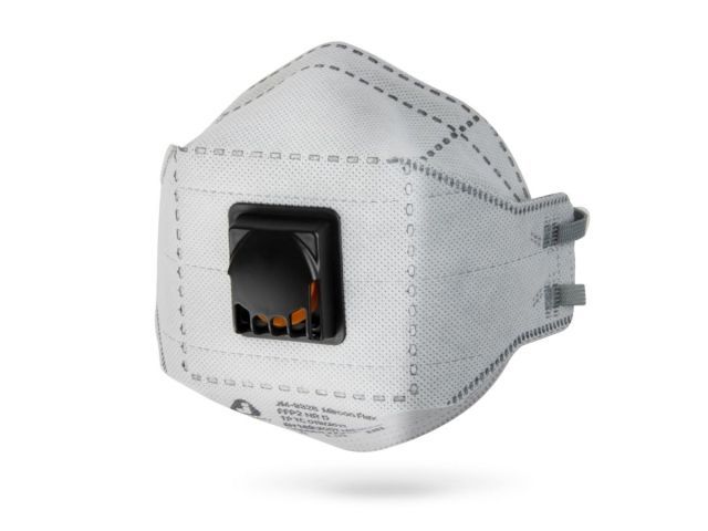 JM-9326 Micron Flex одноразовый противоаэрозольный трехпанельный респиратор с клапаном и дополнительным угольным слоем. Защищает органы дыхания от сварочных паров, микрочастиц стекла, бетона, металлической стружки древесной пыли, штукатурки, строительной пыли в высокой концентрации, стеклянного и минерального волокна, пыльцы, шерсти, бытовой пыли, масляного тумана, жидких аэрозолей и угольной пыли, неприятных запахов. Форма респиратора позволяет носить его в карманах рабочей спецовки. Используется в таких сферах, как сварка, промышленный клининг, строительство и сельское хозяйство, добыча полезных ископаемых, а также при работе с изоляционными и высокоаллергенными материалами, бытовой химией в малых концентрациях, на операциях фрезерования, шлифования, резки и сверлении материалов. FFP2 NR D (ГОСТ Р 12.4.191-99 ССБТ). Особенности и преимущества: Складная трехпанельная конструкция; Угольный слой для защиты от органических газов до ПДК; Алюминиевый носовой зажим высокой плотности; Клапан выдоха MaxFlow с ультразвуковой установкой; Электростатический защитный слой; Классическая конструкция с двумя резинками оголовья; Высокий уровень защиты и низкое сопротивление дыханию; Мягкий носовой уплотнитель; Оптимальный уровень жесткости материала для плотного прилегания и сохранения формы; Устойчивость к повышенному запылению (маркировка D); Индивидуальная упаковка с подвесом для розницы.