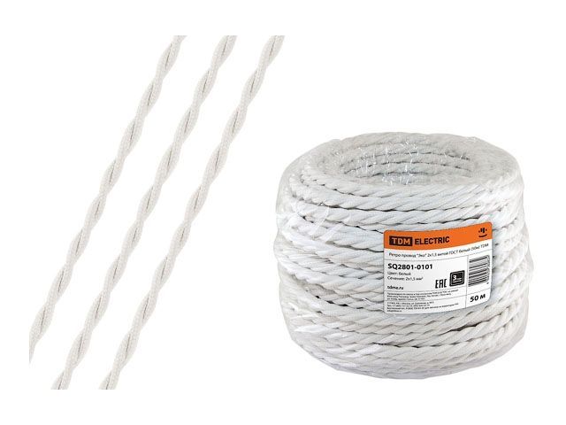 Ретро провод 'Эко' 2х2,5 витой, белый (50м) TDM