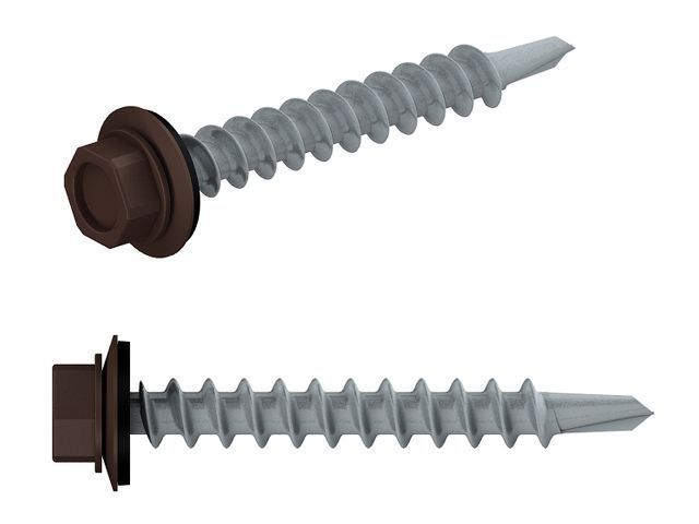 Саморез кровельный 4.8х29 мм цинк, шайба с прокл., PT1, RAL 8017 (5000 шт в коробе) STARFIX(по дереву, цвет шоколадно-коричневый)