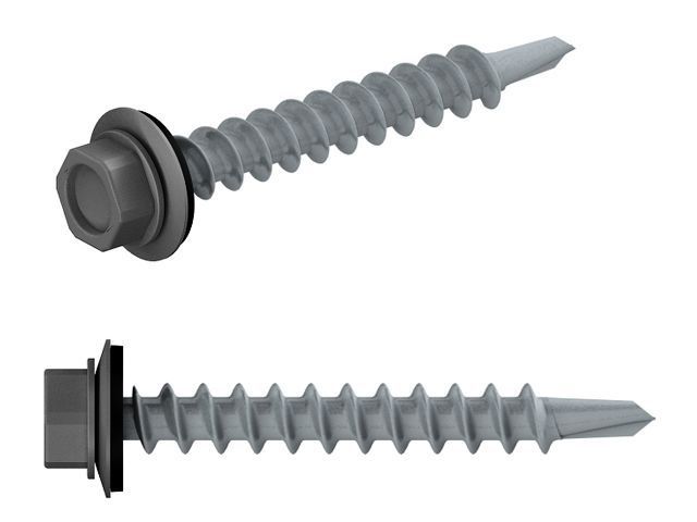 Саморез кровельный 5.5х25 мм цинк, шайба с прокл., PT3, RAL 7024 (4500 шт в коробе) STARFIX(по металлу, цвет графитово-серый)