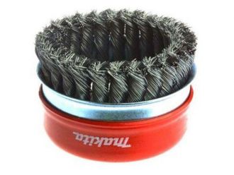 Чашечная проволочная щетка Makita для шлифмашины, диаметр 100 мм, толщина проволоки 0.5 мм, крепление М14. Применяется для быстрой очистки больших поверхностей в тяжелых условиях