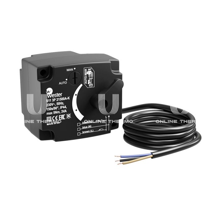Сервопривод Wester S11 3P 21500A-K для 3-ходовых клапанов, 230 В, 5 Нм, 90°, 150 с, 1.5 м