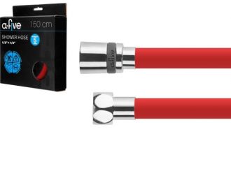 Шланг душевой, Si, 1/2' г-г 150 см, красный, a-five(Гайка латунь (anti-twist), 25 бар)