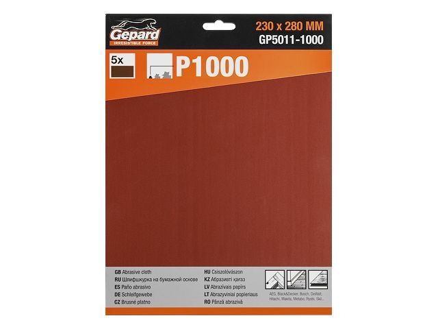 Шлифлист 230х280мм Р1000 бум.осн. 5шт. GEPARD (GP5011-1000)(бумага наждачная абразивная, лист шлифовальный абразивный, шлифшкурка)