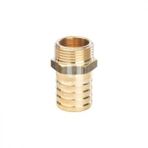 Штуцер латунный с наружной резьбой итальянского производителя Stout представляет собой присоединительный фитинг, у которого с одной стороны располагается наружная присоединительная резьба, а с другой стороны находится оребренная трубка (штуцер). С наружной части фитинга имеется специальный участок под шестигранник для монтажа с помощью гаечного ключа. Штуцеры используют для спуска жидкости или газа из какой-либо ёмкости или трубы, например, с целью сброса избыточного давления. При помощи данного изделия можно легко перейти с резьбового вентиля или шарового крана на резиновый шланг, используемый для полива, или отводить воду из фильтра тонкой очистки при промывке.