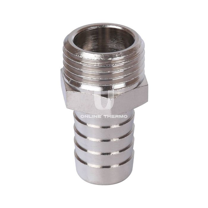 Штуцер никелированный с наружной резьбой итальянского производителя Stout представляет собой присоединительный фитинг, у которого с одной стороны располагается внутренняя присоединительная резьба, а с другой стороны находится оребренная трубка (штуцер). С наружной части фитинга имеется специальный участок под шестигранник для монтажа с помощью гаечного ключа. Штуцеры используют для спуска жидкости или газа из какой-либо ёмкости или трубы, например, с целью сброса избыточного давления. При помощи данного изделия можно легко перейти с резьбового вентиля или шарового крана на резиновый шланг, используемый для полива, или отводить воду из фильтра тонкой очистки при промывке. Технические характеристики: материал: латунь; рабочая среда: вода, водный раствор гликолей до (30%); диапазон рабочих температур, °С: –30 до +120; тип резьбы: наружная; размер присоединительной резьбы, дюйм: 1 1/2.