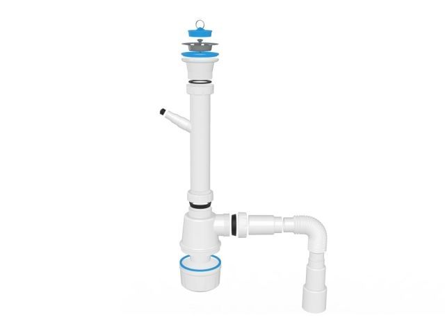 Сифон для кухни с выпуском 70мм, с отводом для стир. маш., с гибкой трубой 1 1/2' - 40/50, AV