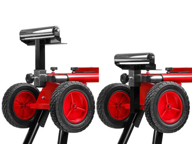 - Регулируемые по высоте и длине роликовые опоры обеспечивают хорошую поддержку длинных заготовок с возможностью ограничения по длине реза.