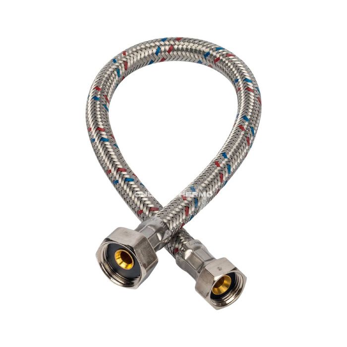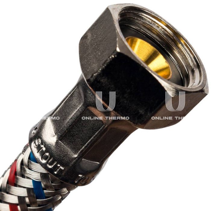 Для того, чтобы соединить линию водоснабжения с устройством подачи, чаще всего используется гибкая подводка для воды – прочный армированный шлаг с износостойкой оплеткой. Такая подводка относится к группе расходных материалов, так как довольно часто выходит из строя. К тому же у нее шире спектр рабочих температур и она устойчива к изнашиванию, сжатию, излому и горению. Внутренний шланг гибкой подводки STOUT изготовлен из экологичного материала - EPDM (пищевой). EPDM- материал повышенной плотности (монолитный), обеспечивает высокую износоустойчивость (большее количество циклов работы). Латунь, используемая в производстве гибкой подводки - пищевая (латунь специальная, ЛС), в ней меньшее содержание Zn, Pb. Высокое качество запрессовки втулки из нержавеющей стали к шлангу дает 100% защиту от протечек.