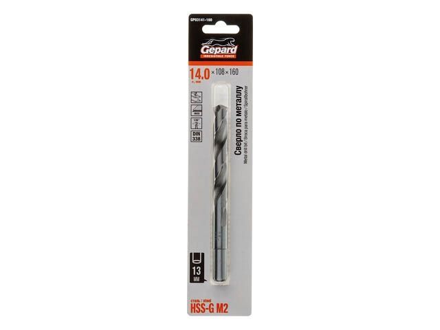 Сверло по металлу ц/х 14.0х108х160 мм HSS-G GEPARD(хвостовик 13мм)